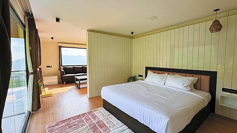 The suite has 1 bedroom and 1 bathroom with a bath and a shower. The suite features tiled floors and offers an electric kettle, a sofa and mountain views. The unit has 1 bed.